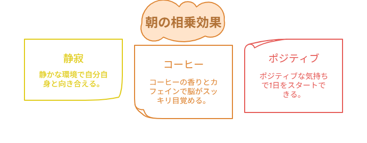 この小さな成功体験が、日中の仕事や家事に対するモチベーションを大きく変えてくれるのです。